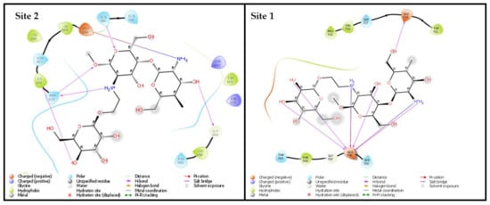 In silico molecular docking 2D images of ligand protein contact; sites 1 and 2.