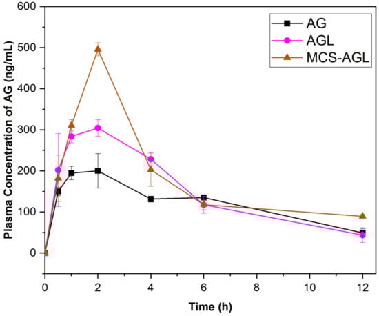 Pharmacokinetics profile of AG, AGL, and MCS-AGL.