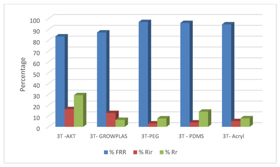 For 3T, the maximum % FRR was found for VUV-PEG (96%), and so the minimum irreversible fouling was 3%.