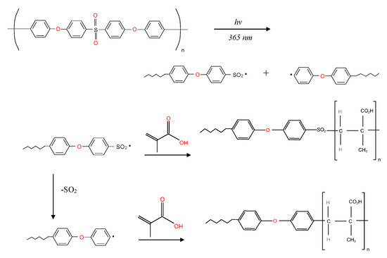 UV−photochemical grafting modification of polyether(sulfone) with methacrylic acid.