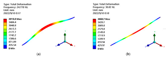 4.1. Effect of Length and Air Velocity on the Hollow Fiber Membrane’s Inherent Frequency and Mode Shape