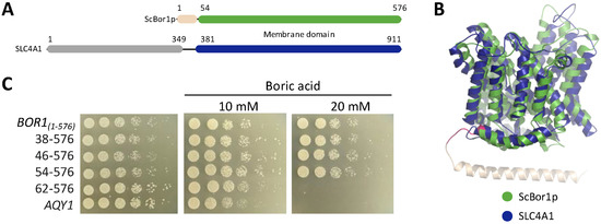 - Beltran, J.L.; Bain, R.K.; Stiefel, M.J.; McDonnell, A.S.; Carr, N.N.; Thurtle-Schmidt, B.H. Human SLC4A11 Does Not Complement BOR1 or Support Borate Transport in Saccharomyces Cerevisiae. MicroPubl. Biol. 2022. [Google Scholar] [CrossRef]