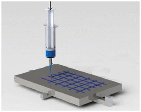 Near-field electrospinning (NFES) is a technique that allows membranes to be made by layering polymers on a planar substrate under the action of an electric field. Compared to conventional electrospinning technology, it favours a shorter spinning distance, a lower supply voltage, a more complex structure and controlled deposition [] (Figure 2). The advantage of using this technique is the realization of membranes with a regular geometric pore structure []. In the biomedical field, electrospun fibrous scaffolds with adequate porosity, nanoscale topography and interconnectivity provide an ideal model for biomedical engineering as human tissues and/or cells are able to attach and organize themselves appropriately around fibres with diameters smaller than their own [].