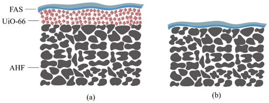 Schematic illustration of AHF modification by (a) AHF without UiO-66 and (b) AHF with UiO-66.