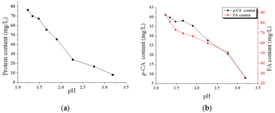 Furthermore, the component that has been transferred to extract (C) was inferred to be a mixture of protein and residual lignin with weakly interactions. During the acid hydrolysis process, the predominant reaction of lignin is the cleavage of the β-aryl ether band, which is the most abundant interunit linkage in lignin. The cleavage of the β-aryl ether band significantly decreases the mean molecular weight of lignin and increases its solubility as well as the content of phenolic hydroxyls in the acid hydrolysate. The soluble lignin can produce adsorption sites for protein through hydrophobic, electrostatic, and hydrogen bonding interactions.