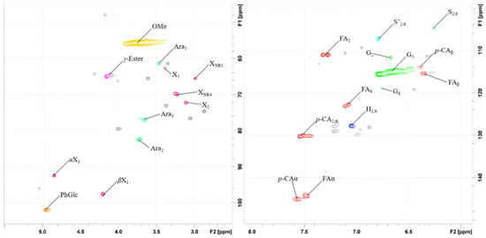 Two-dimensional HSQC (2D-HSQC) spectra were recorded on a Bruker AVANCE-III 600 MHz spectrometer at 25 °C. Before analysis, the samples were freeze-dried, and then 20 mg was dissolved in 0.5 mL of dimethyl sulfoxide-d6 (DMSO-d6).