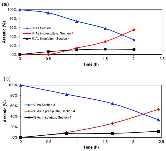14]. In these cases, the focus was on obtaining a Cu-rich solution, whereas the behaviour of arsenic was not the main objective of the studies. Furthermore, the Cu-to-As mass ratios in the solutions studied were around 3, where this ratio in real copper smelter wastewaters ranges between 0.05–0.2 [