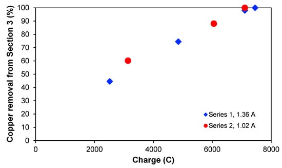 It could be interesting to see if the copper removal is dependent on the passed electric charge when the treatment is applied, and this is illustrated in