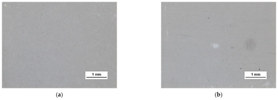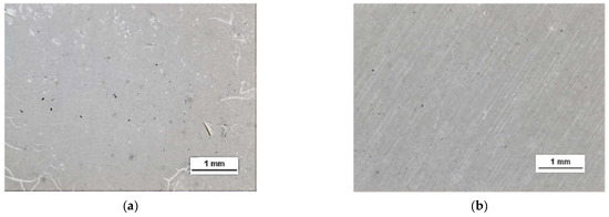 HSMG® and CVD graphene sheets were transferred onto surface-modified (O2 plasma, DBD, and 5% HF etching) ceramic substrates using the wet transfer method supported by a PDMS/PMMA layer. Then, a qualitative assessment of graphene on an aluminium oxide substrate was carried out. Images obtained with a stereomicroscope, at 40× magnification, showed the surface of both types of graphene after etching the ceramics with DBD barrier discharge plasma (Figure 7), RF PACVD oxygen plasma (Figure 8), and 5% hydrofluoric acid (Figure 9).