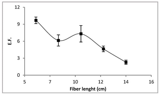 The influence of hollow fibre length on the transport of the analyte from the sample through the supported liquid membrane and into the acceptor solution was directly related with the volume of the later in the lumen. An increase in the fibre length implies a greater volume of the acceptor phase and a dilution effect of the extracted analyte, which leads to a decrease in EF. However, when increasing fibre length, a greater contact area between analyte and liquid membrane is obtained and an EF increase is expected. In the proposed method, the fibre length was studied between 6–14 cm and the results showed that EF decreased with an increase in this variable (Figure 3). Therefore, the dilution effect prevailed over the contact area, so a fibre length of 6 cm was selected as optimum for the following experiments.