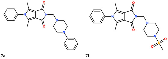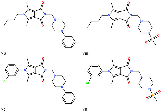 The structures of the six (7a–7c, 7l–7n) investigated N-Mannich base derivatives of pyrrolo[3,4-c]pyrrole.