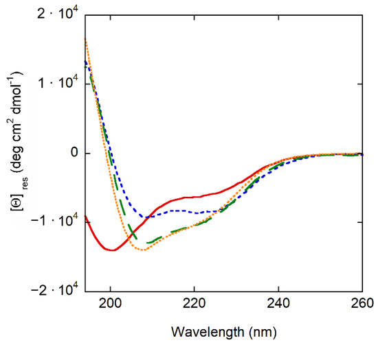 3.3. Secondary Structure of the Peptide: CD Experiments