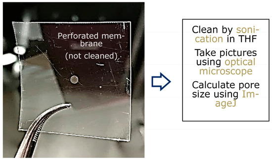 Tetrahydrofuran (THF) is used to clean the ablated polymer films. The pore morphology can be analyzed by optical microscopy, and the average pore sizes can be calculated by using image analysis software, such as ImageJ and Excel.