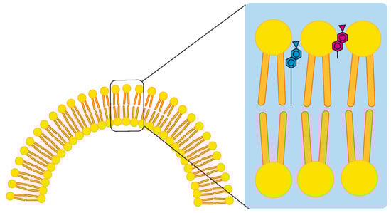 - Van Meer, G.; Voelker, D.R.; Feigenson, G.W. Membrane lipids: Where they are and how they behave. Nat. Rev. Mol. Cell Biol. 2008, 9, 112–124. [Google Scholar] [CrossRef]