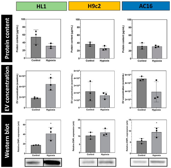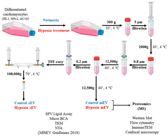 3.1. Characterisation of Small- and Medium-Sized Cardiomyocyte-Derived EVs under Normoxic and Hypoxic Conditions