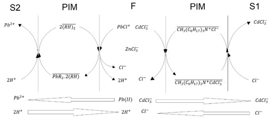 As for Pb(II) transport, the following transport reaction in PIMs with D2EHPA (RH) has been reported [60]: