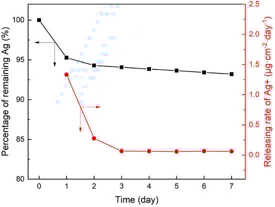 | Base Membranes | Modified Layers | Loaded Ag Amounts (μg/cm2) | Release Rate of Ag+ (μg·cm−2·day−1) | Water Flux (L·m−2·h−1) | Rejection (%) | The Mortalities of Bacteria (%) | Refs. |