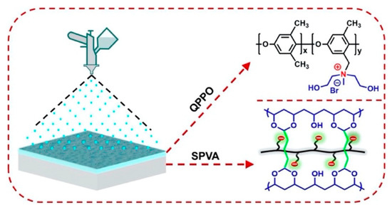 Surface modification of the sulfonated PPO-PVA membrane with the quaternized PPO solution. The figure is reprinted with permission from [101] (Copyright © 2019, Elsevier).