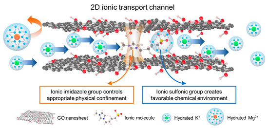 - Zhang, M.; Zhao, P.; Li, P.; Ji, Y.; Liu, G.; Jin, W. Designing Biomimic Two-Dimensional Ionic Transport Channels for Efficient Ion Sieving. ACS Nano 2021, 15, 5209–5220. [Google Scholar] [CrossRef] [PubMed]