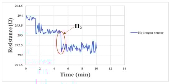 Resistance changes of micro hydrogen sensor correction between 0 min and 10 min.
