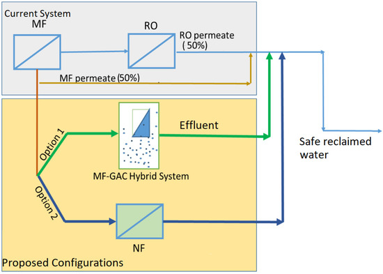 Schema showing a hybrid dual-membrane system for water reuse purposes.