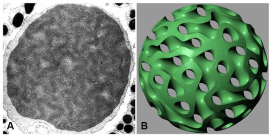 - Almsherqi, Z.A.; Landh, T.; Kohlwein, S.D.; Deng, Y. Chapter 6: Cubic Membranes the Missing Dimension of Cell Membrane Organization. Int. Rev. Cell Mol. Biol. 2009, 274, 275–342. [Google Scholar] [CrossRef] [PubMed]
