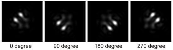 The entire system demonstrates robustness against rotation and changes in direction. Although the shape of the focal spot undergoes dramatic changes based on the transmission direction, the power of the transmission remains consistent. Consequently, the structure can be described as a quasi-bandgap or an imperfect photonic crystal, as depicted in Figure 9 and Figure 10.