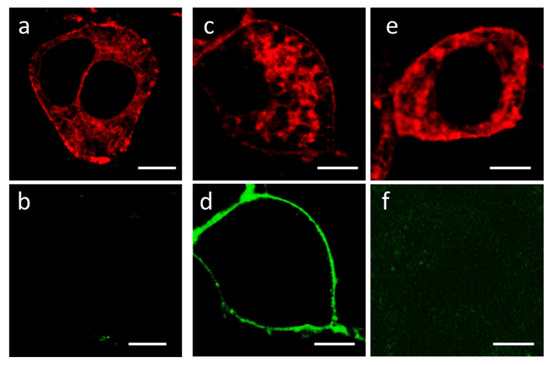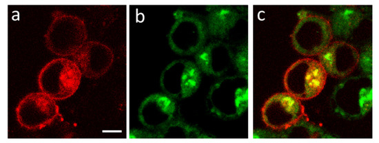 While the plasma membrane localization of K-Kv1.1 was confirmed due to the binding of A-HgTx (Figure 3), the intracellular localization of K-Kv1.1 in Neuro2a cells was characterized by laser scanning confocal microscopy using fluorescent markers of cellular organelles.