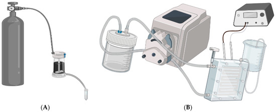 Schematic diagrams showing the experimental setup for the dead-end filtration system in (A) and the crossflow filtration system in (B) as used in the performance analysis of the as-synthesized membranes in this study.