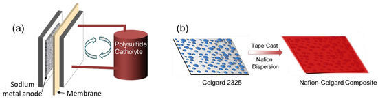 7. Tyler, J.L.; Sacci, R.L.; Lehmann, M.L.; Yang, G.; Zawodzinski, T.A.; Nanda, J. Nafion Inhibits Polysulfide Crossover in Hybrid Nonaqueous Redox Flow Batteries. J. Phys. Chem. C 2022, 126, 21188–21195. [Google Scholar] [CrossRef]