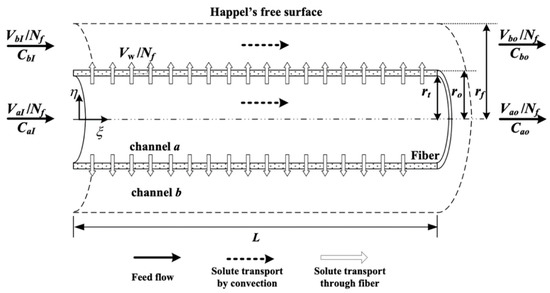 - Noda, I.; Gryte, C.C. Mass transfer in regular arrays of hollow fibers in countercurrent dialysis. AIChE J. 1979, 25, 113–122. [Google Scholar] [CrossRef]
