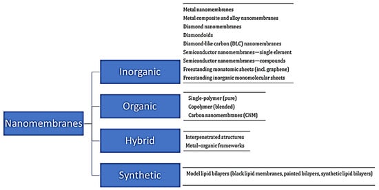 Nanomembranes are broadly classified into inorganic, organic and hybrid types and synthetic biomembrane types (Figure 4) based on the materials they are made from.