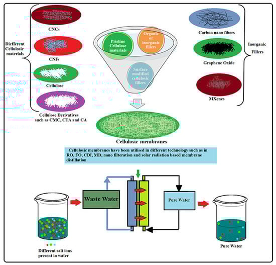 Water desalination using nanocelluloses/cellulose derivatives based membranes for sustainable future reprinted with copyright permission [70].