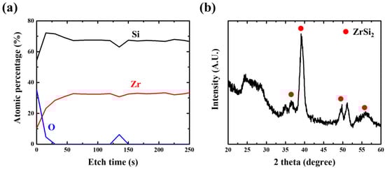 (a) XPS depth profile and (b) XRD diffraction patterns of ZrSi2 thin films.