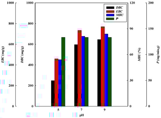 Membrane bed utilization (MBU, %) is defined as the ratio of the DBC to the EBC using Equation (4) [28]: