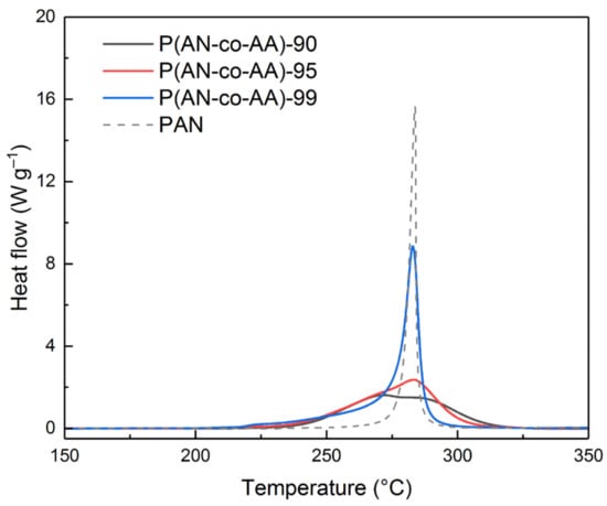 DSC results for PAN and P(AN-co-AA) samples.