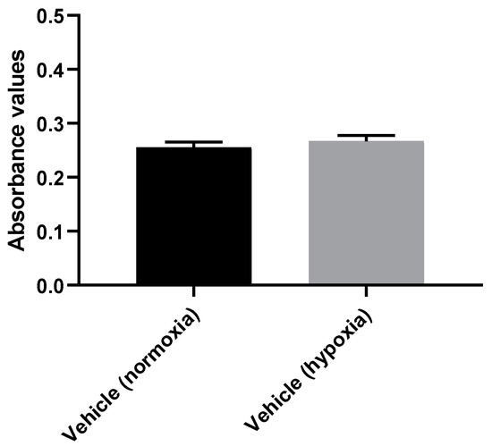 Comparative effect of induced hypoxia (with the hypoxia incubator) vs. normoxia on SH-SY5Y cell lines, 48 h. The results represent the mean ± SEM of three independent experiments.