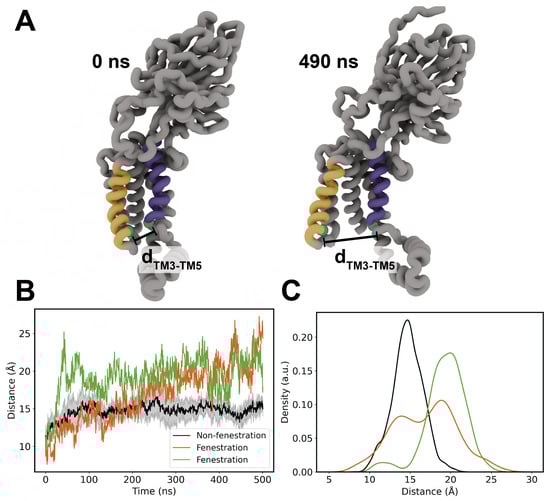3.2. Divergence in RMSD Suggests TM Helices Are Dynamic