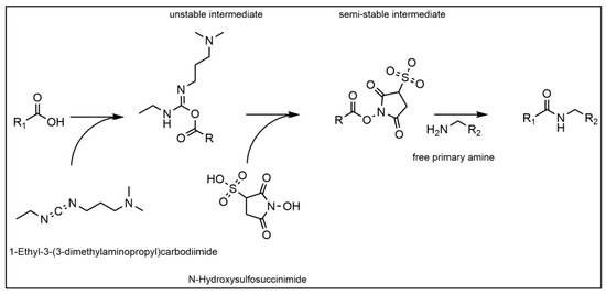 Reaction mechanism of the NHS/EDC reaction.