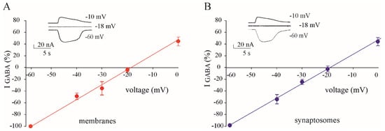 3.2. GABA Reversal Potential in Oocytes Injected with Membranes and Synaptosomes
