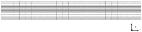 The two-dimensional axisymmetric model of the hollow fiber membrane module established in this study was meshed by ICEM software, and quadrilateral mesh was used for meshing. Figure 3 shows the schematic diagram of the two-dimensional axisymmetric mesh for the hollow fiber membrane module (only a section of the model is displayed in Figure 3). Because of the complexity of the flow in the membrane region, the mesh in the membrane region is densified to ensure the accuracy of the simulation. As can be seen in Figure 3, the grid is densified near the membrane region.
