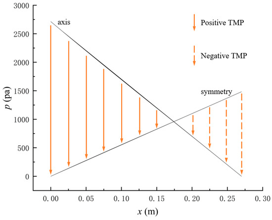 where is the pressure at the axis of the geometric model, and is the pressure at the symmetry of the geometric model (see Figure 2). If , TMP is defined as positive TMP, and if , TMP is defined as negative TMP, then positive TMP conducts the convective mass transfer from the tube-side to the shell-side, and negative TMP conducts the convective mass transfer from the shell-side to the tube-side.
