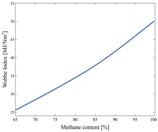 Wobbe Index as a function of CH4 content in biogas based on data from [111,112].