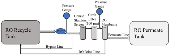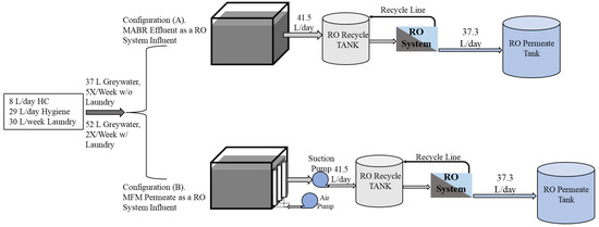 Flow diagram of each process configuration for the graywater–RO system.