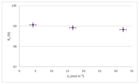 The rejection coefficient presented in Equation (5) compares the solute concentration in the inlet flow Cf with the solute concentration in the permeate flow Cp.