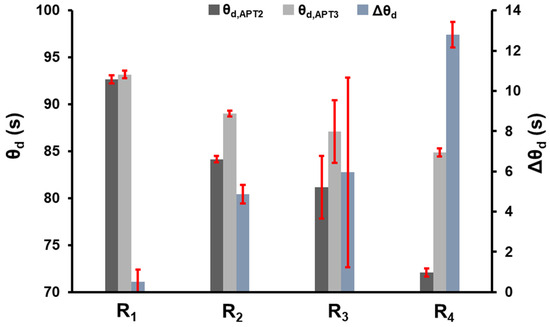 The absolute theoretical value of the time lag in the R1 at APT3 is smaller than at APT2. Consequently, the experimentally measured time lag by APT3 in the R1 configuration of 93.18 s is the closest to the actual time lag of the tested PPO membrane. Considering the experimental Δθ and the theoretical θs at APT2 and APT1 in the R1 configuration, it can be concluded that the actual time lag of the membrane is approximately 93 s, i.e., θ at APT3 in R1 is slightly overestimated, but not by more than 0.2 s. We will consider θm = 93.13 s as a reference value in the following discussion.