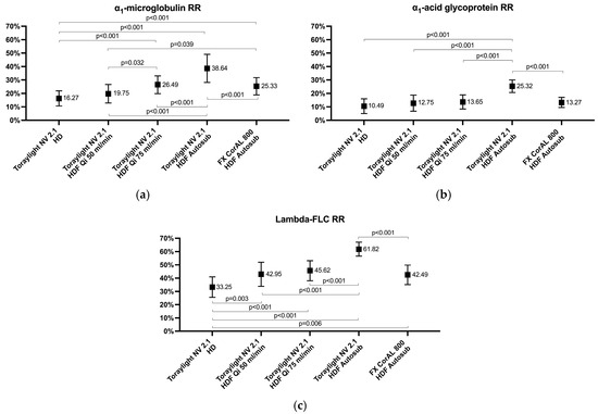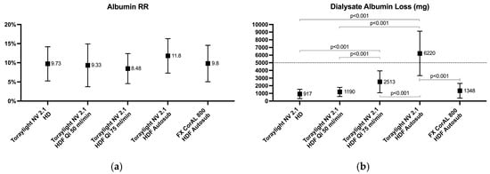 - Ehlerding, G.; Ries, W.; Kempkes-Koch, M.; Ziegler, E.; Erlenkötter Zawada, A.M.; Kennedy, J.P.; Ottillinger, B.; Stauss-Grabo, M.; Lang, T. Randomized comparison of three high-flux dialyzers during high-volume online hemodiafiltration-the comPERFORM study. Clin. Kidney J. 2022, 15, 672–680. [Google Scholar] [CrossRef]
