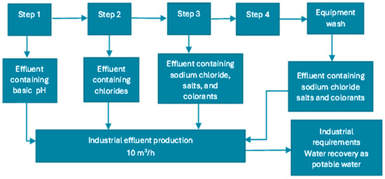 2.2.2. Design and Application of the Process of Effluent Treatment for Water Recovery