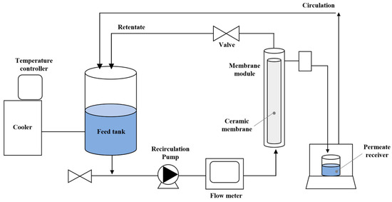 Schematic of the crossflow tubular ceramic membrane filtration system.