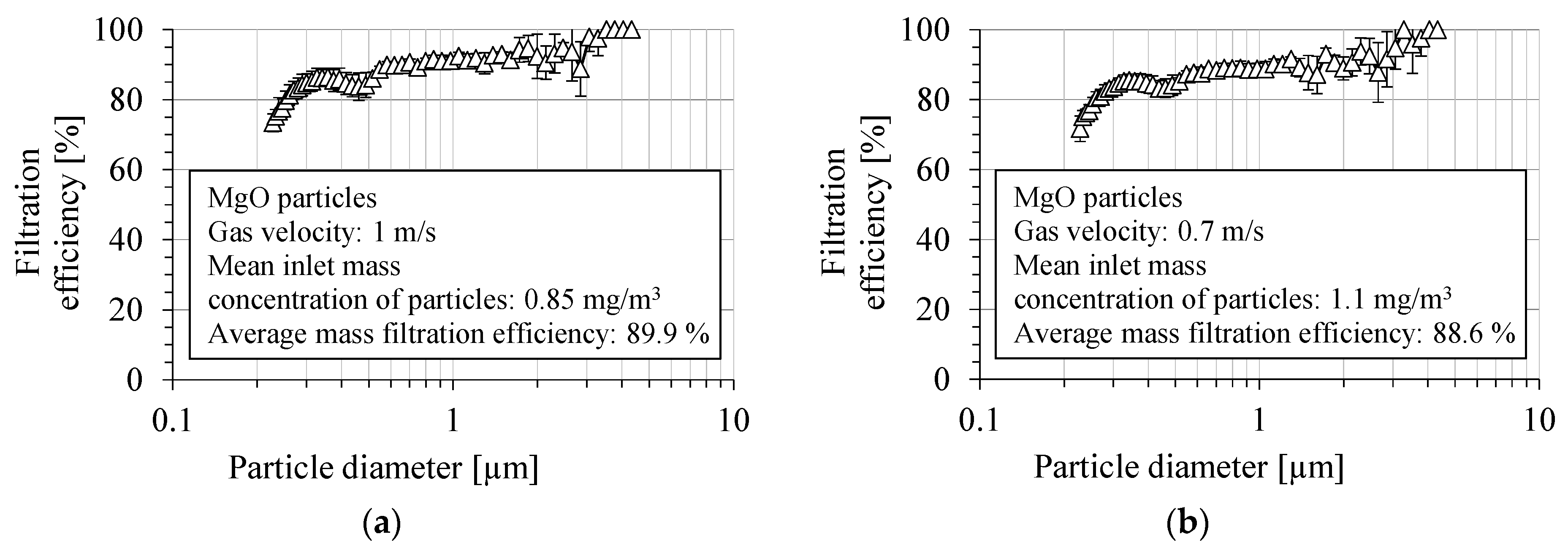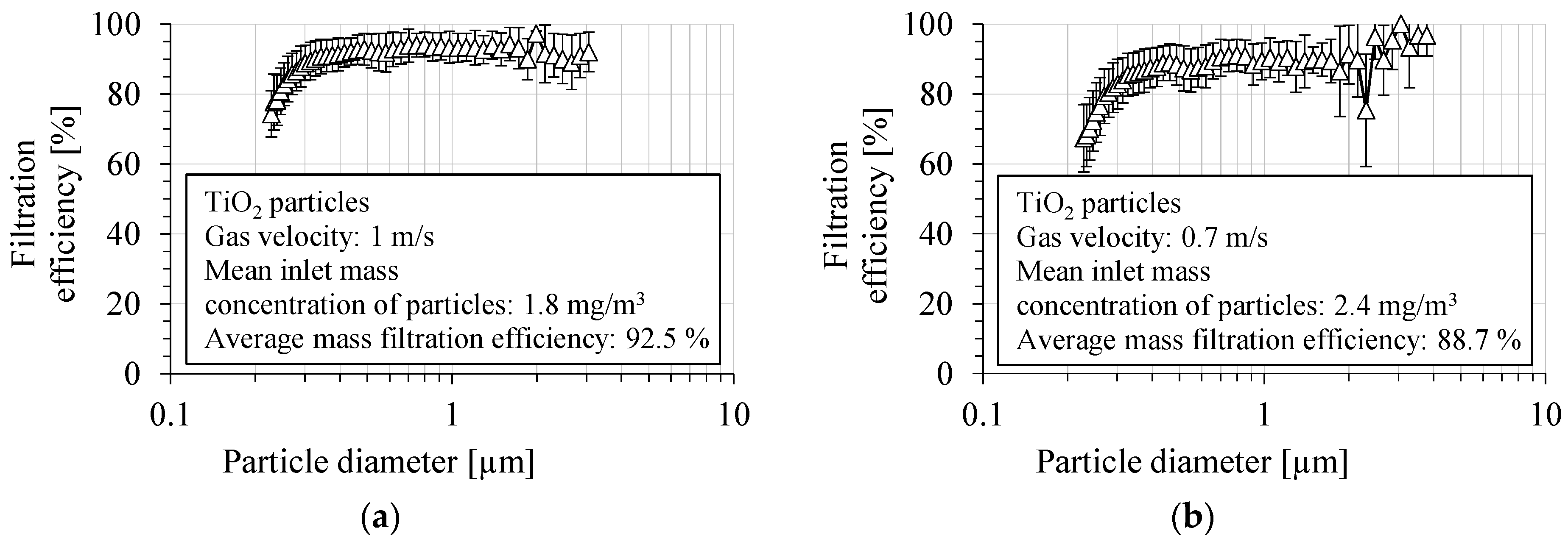 Average mass filtration efficiency [%] | 88.7 ± 6 | 92.5 ± 3.9 | 88.6 ± 0.8 | 89.9 ± 2.2 | 88.8 ± 3.1 | 91.5 ± 2.3 |